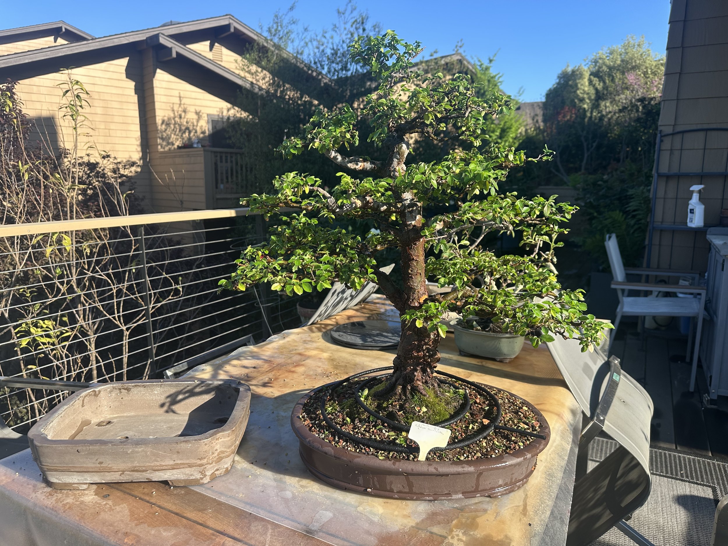 My beloved gardener and now friend gifted this to me in the early 2000's. About 7 years ago it was blown over and landed on its top, breaking off 7" of its apex. It has been repotted several times, most recently by Steve Iwaki — who has made significant styling enhancements!