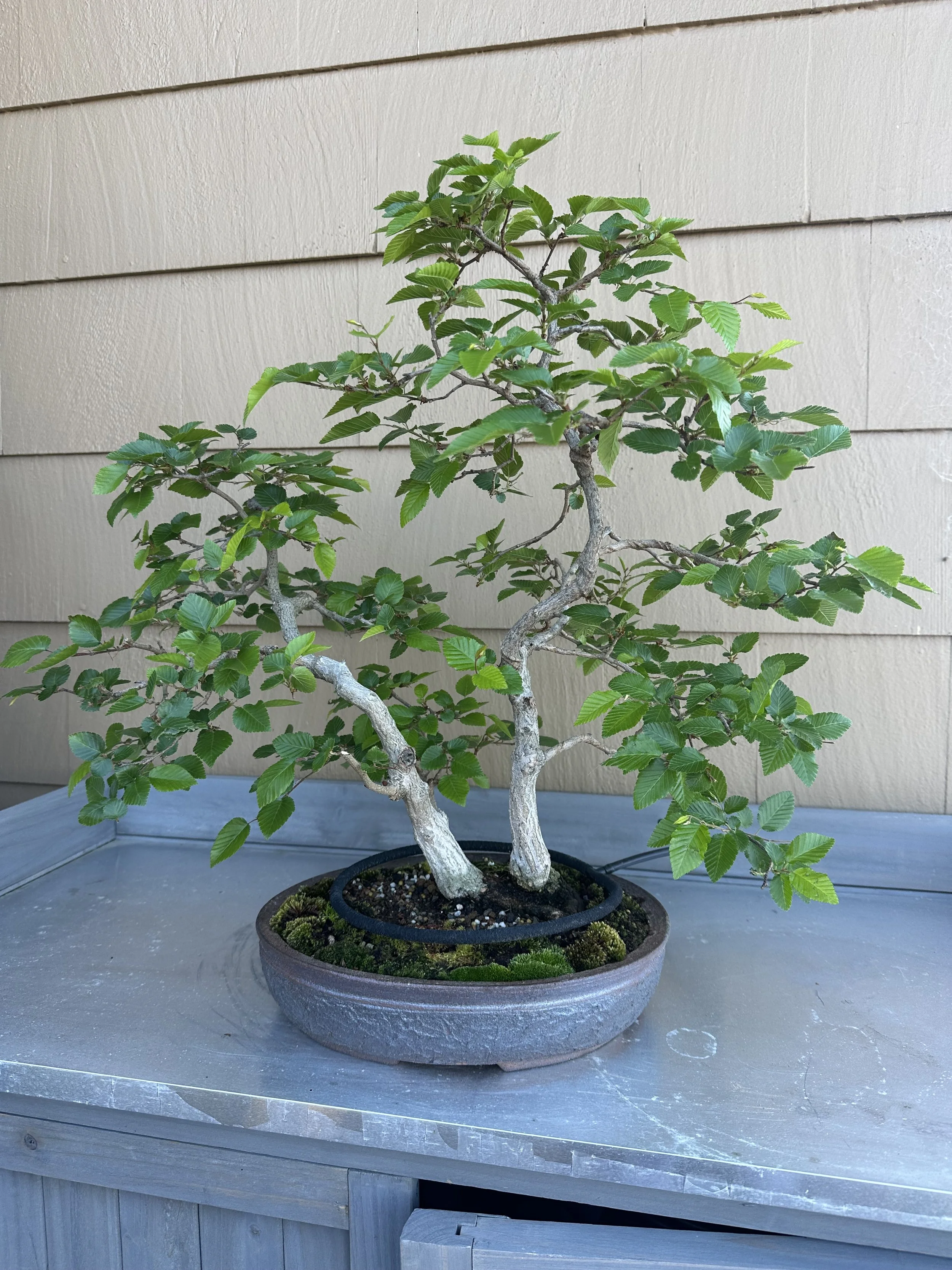This twin-trunk Hornbeam was acquired from a Kusamura Bonsai Club show in 2019, shortly after Katherine joined the club.