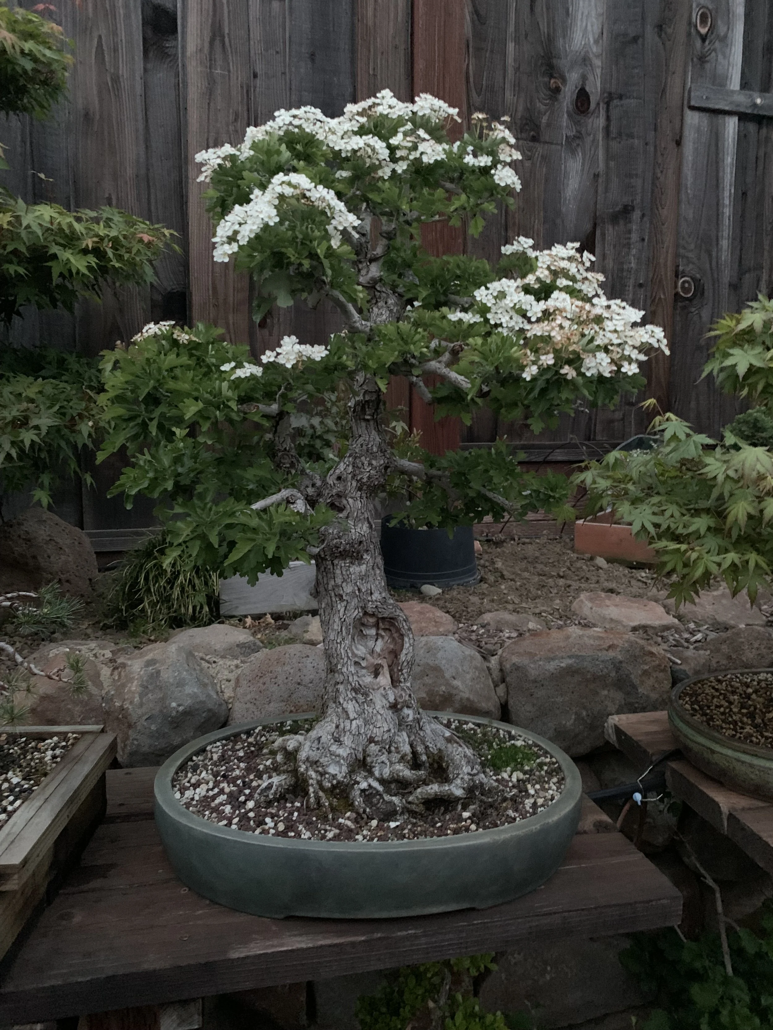 This Hawthorn has been in bonsai training since around 1985, carrying with it the slow, deliberate development that only time can provide.