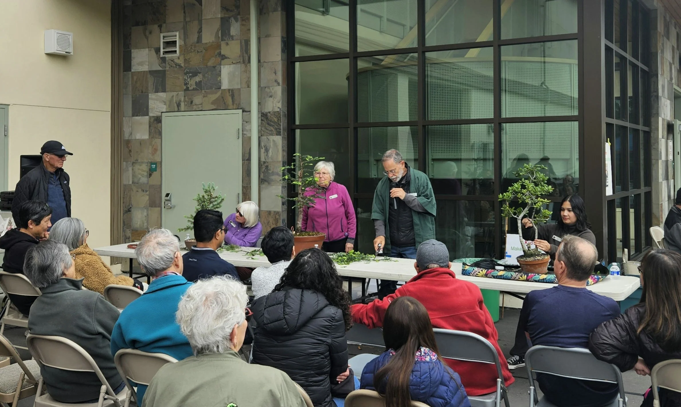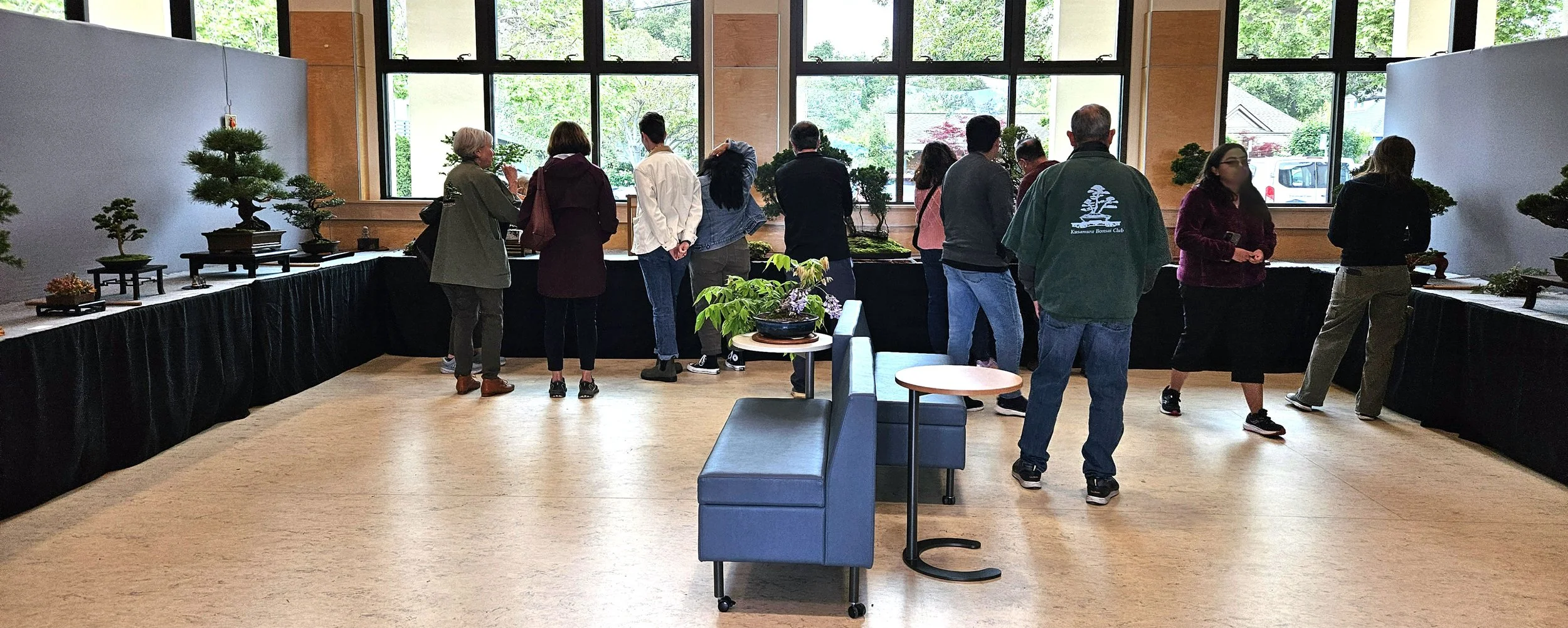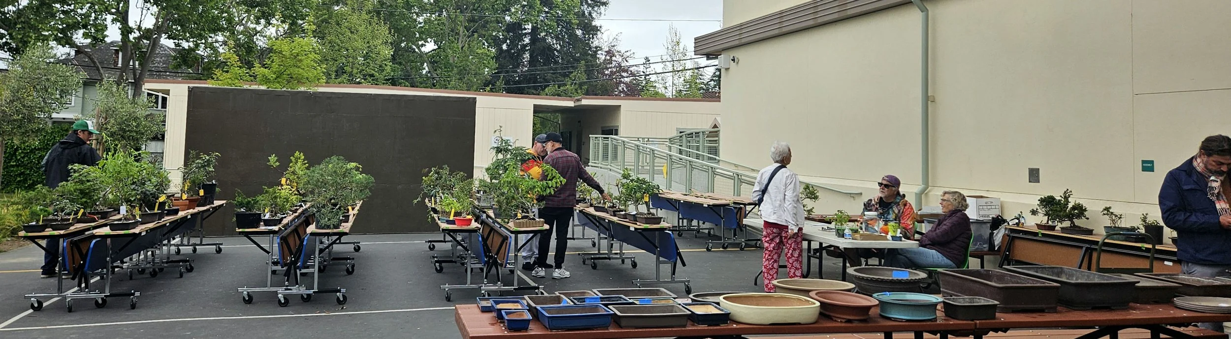 We thank Gordon Deeg for his extraordinary trees, for bringing the logo tree from the east bay, and for his service as Doctor Bonsai. He was very busy.