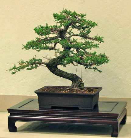 During the Mitsuya workshop he bent the top down dramatically and fashioned a new apex from upper / rear branches. He also turned several of the lower branches into long jins. He said to break them back later — but once the tree developed, the moment they would give the tree some character. I've done that, although I can't remember if I removed the lowest jin, sticking out at right angles from the first bend. I was supposed to.